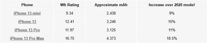 上周,苹果公司推出了iPhone 13系列,像往常一样,电池寿命的延长成为宣传亮点,却忽略了它们容量的任何细节。周末出现了一份文件披露了电池的容量,并显示它们增加了多少。