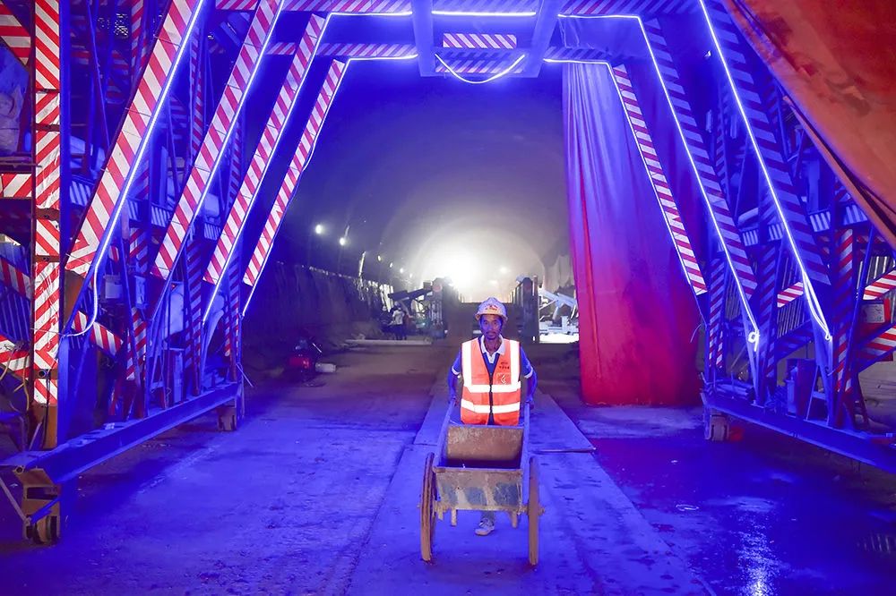 ▲9月8日,施工人员在渝昆高铁川渝段站前一标缙云山隧道作业