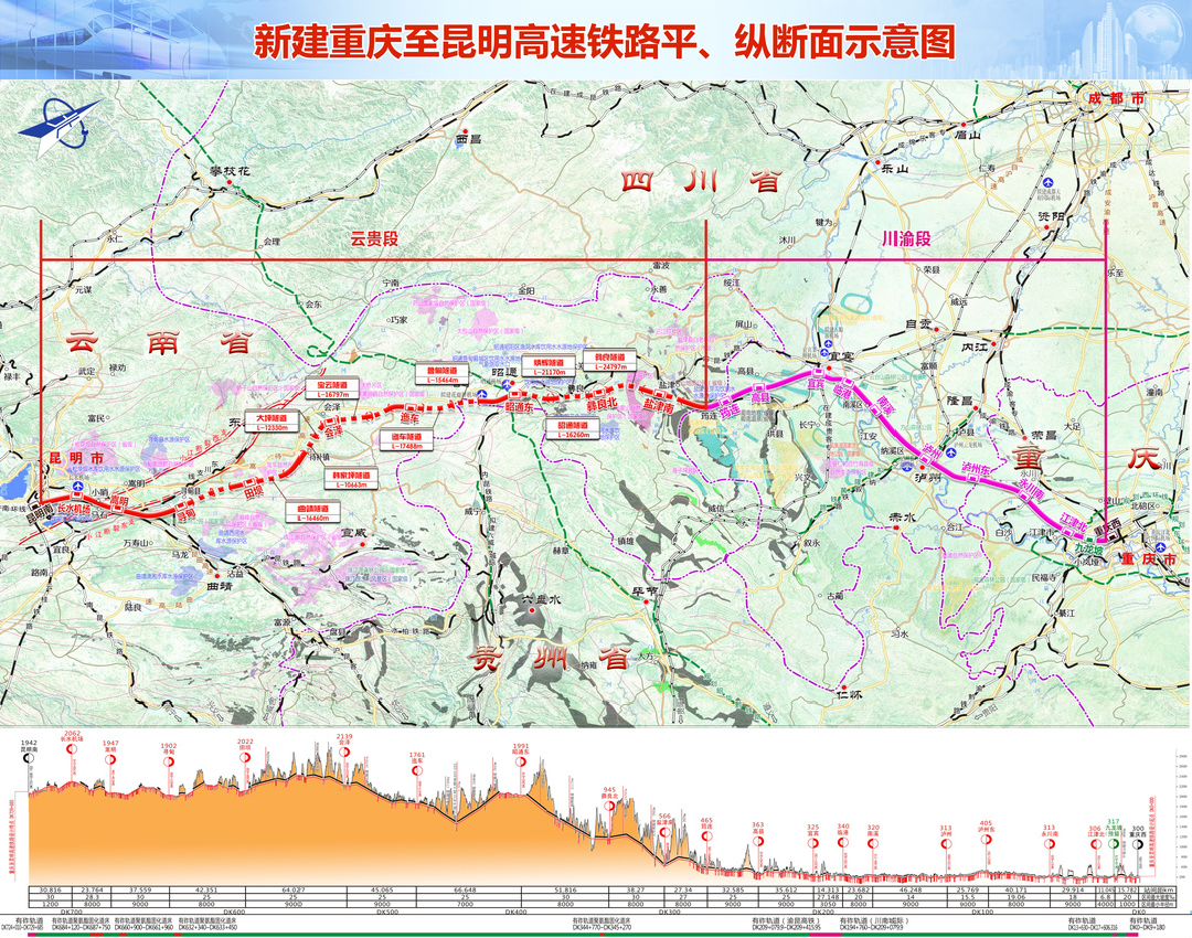 渝昆高铁是国家“八纵八横”铁路大通道京昆高铁的重要组成部分,设计行车速度350公里每小时,是一条以服务长途客流为主,兼顾城际客流的高速客运专线铁路。