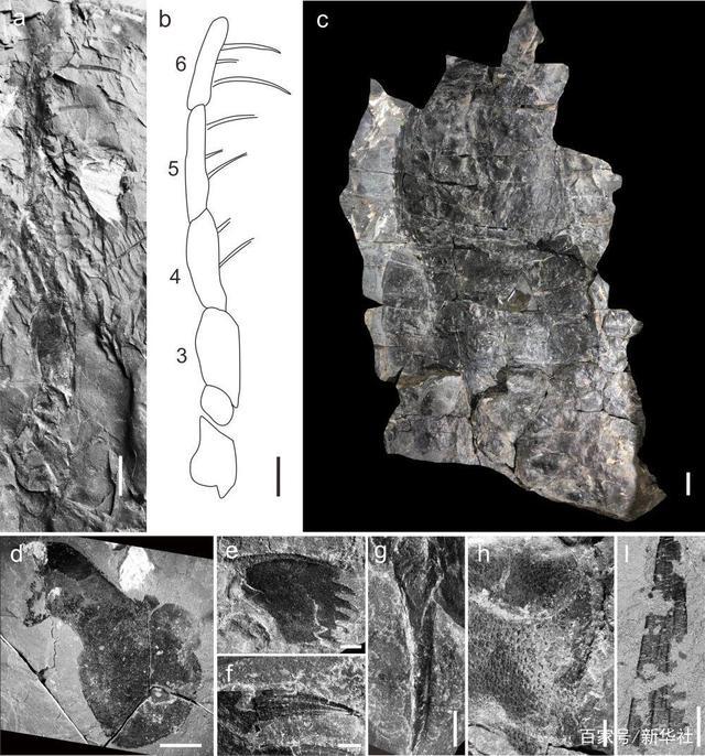 恐鲎未定种(a-c)及秀山恐鲎(d-i)的化石图。(中科院南古所供图)