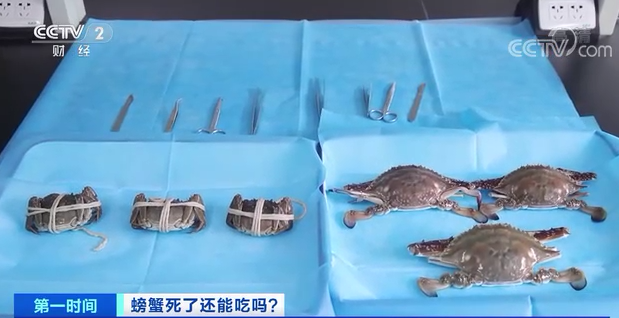 为了验证死螃蟹是否存在食用风险,我们在市场上购买了大闸蟹和梭子蟹两种实验样本,并把它们带到了中国水产科学研究院进行实验。