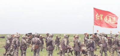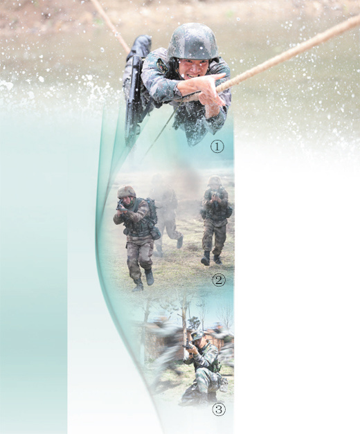 图①:“飞夺泸定桥红二连”官兵在野外训练。