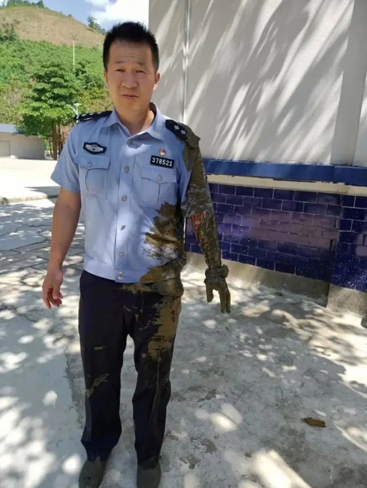 金水河边境派出所民警蔺发宝摔倒后被沾满半身泥浆