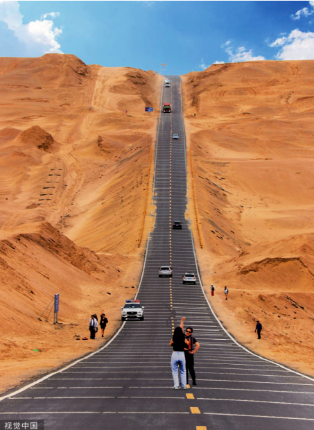 还有艺人在宁夏中卫66号公路拍摄照片、跳舞……