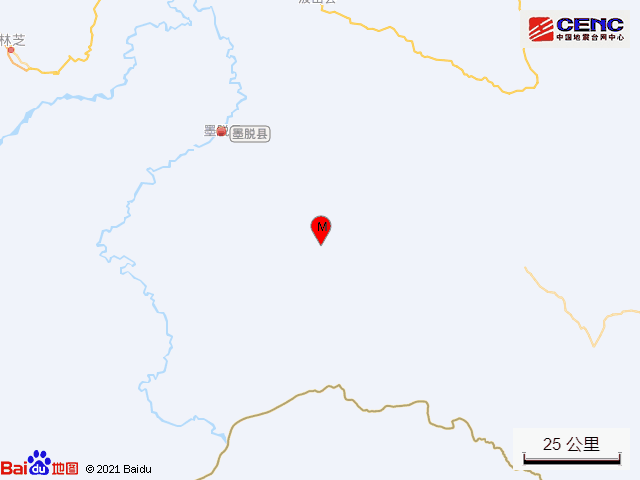 据中国地震台网正式测定,12月14日20时32分在西藏林芝市墨脱县发生3.0级地震,震源深度20千米,震中位于北纬28.89度,东经95.79度。