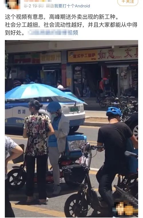 “作为买家,你根本不知道自己的餐食被多少人倒过多少手。”不过也有网友表示担心,“这大妈应该是自发的吧,与外卖平台没有合同关系,理论上是存在安全隐患的。”“食品出现问题大妈可不负责。”“外卖食品安全还能保证吗?”