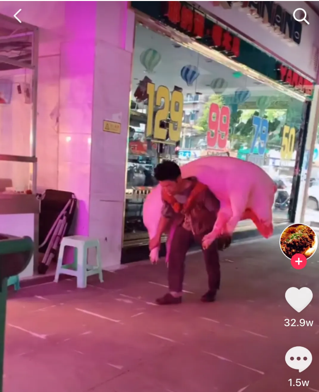 这位“背肉汉”的视频在抖音上得到了超30万点赞:有人觉得他不易,有人觉得很心酸。但朱启伍笑着说,对这工作他已感到满足:至少靠着这个体力活,他养活了一家人。 “今年最重的背了480斤”
