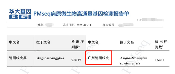 果不其然,几天后的检查结果显示,在小林的脑脊液里检测出了广州管圆线虫上万的序列数, 证实了医生们的推断是对的。