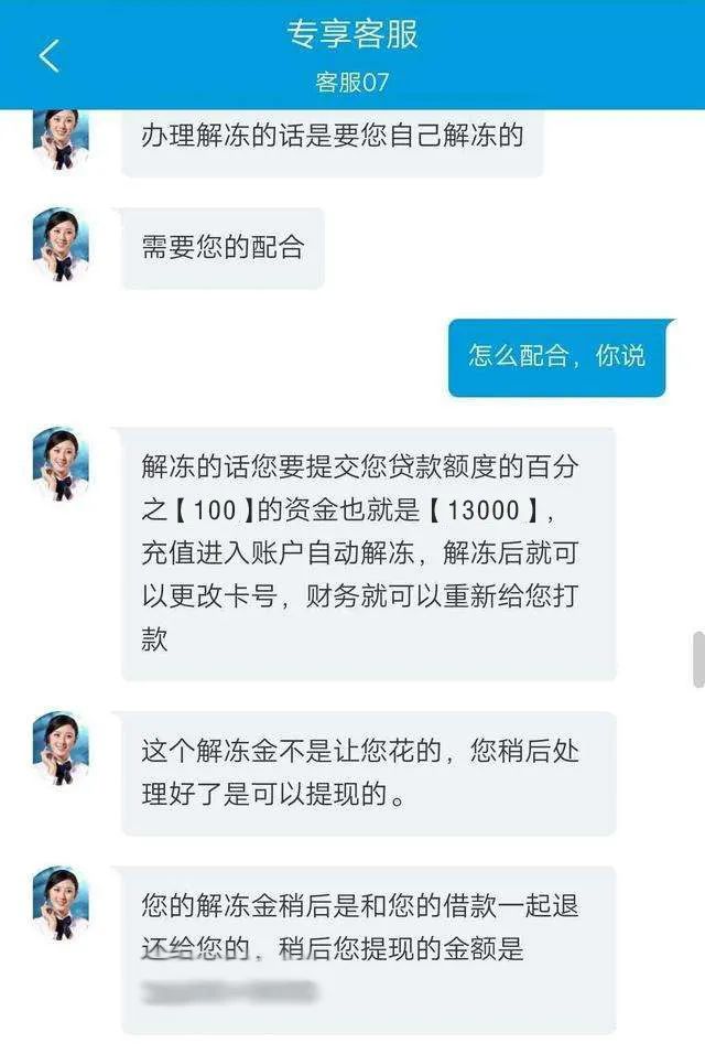 “你贷款被冻结,应该是银行卡填错了,你去核对一下银行卡号吧。”当王某联系客服询问贷款提现不了的原因时,客服如此回答。