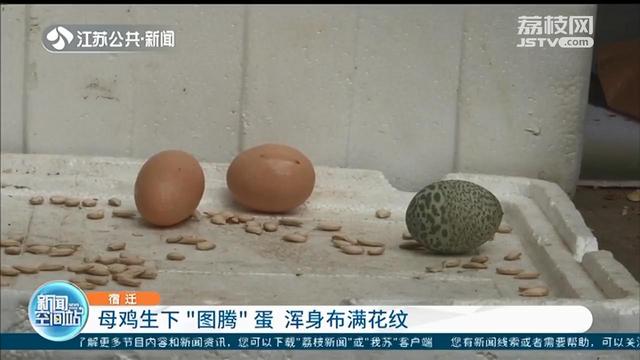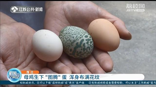 平常我们见到的鸡蛋都是红壳或绿壳。不过,近日,宿迁高女士家的母鸡却下了一颗长了花纹的“怪蛋”。