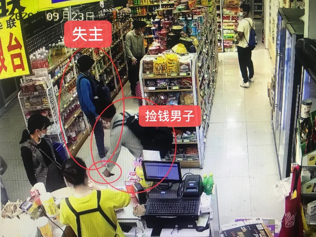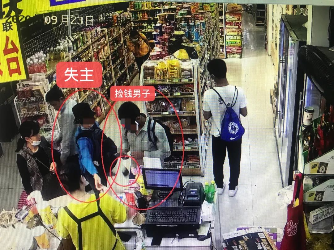 了解基本信息后,民警第一时间进行视频追踪,迅速锁定掉落位置为城站二楼南侧超市,同时确定捡包男子的外貌特征。而监控显示,丢落的钱包是被两名旅客捡走了。捡到钱包的旅客看了一眼失主,但还是决定将钱包据为己有。