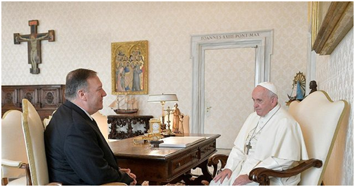 蓬佩奥本月20日在其个人推特上威胁道:“如果梵蒂冈延长这项协议,它将危及自己的道德权威。”在此之前,蓬佩奥18日还在美国宗教杂志《第一要务》上发表文章污蔑称,中国对各种宗教的信徒进行了“可怕的迫害”。