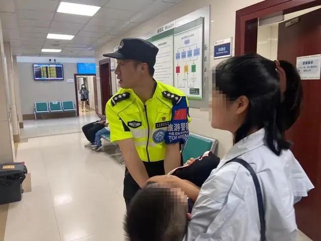 在医生进行检查治疗,确认小孩子无碍后,景安巡逻队队员安慰好家长情绪,继续转岗至晚上的勤务工作,家长表达了诚挚的谢意。