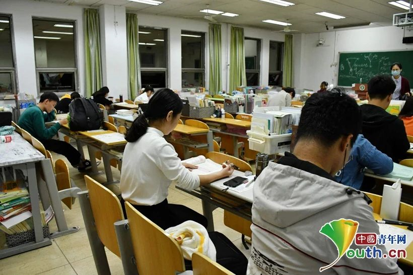 有人从早上6点走出宿舍,晚上11点才到宿舍休息,除去吃饭和休息时间,每天在自习室内的学习时间长达14小时。 有学生表示:“虽然遇到了国庆和中秋假期,但要复习的内容还有很多,这个双节并没有特意过,仅仅是领了食堂发的月饼后就回教室复习了。”