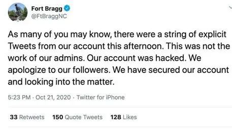 不久后,布拉格堡军事基地删除了这些推文,并发推解释称,他们的推特账号“被黑了”。