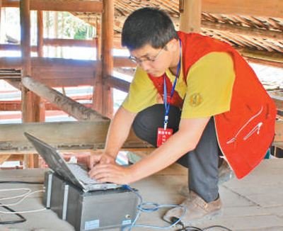 2013年芦山发生地震,曲哲赶赴现场对农居进行振动测试。