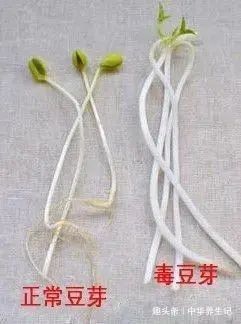 毒豆芽是在生产过程中加入很多有毒有害的物质,比如说无根剂。无根剂的学名为6-苄基腺嘌呤、4-氯苯氧乙酸钠,它能促进细胞再生、保绿防老,让豆芽生的又长又好看。