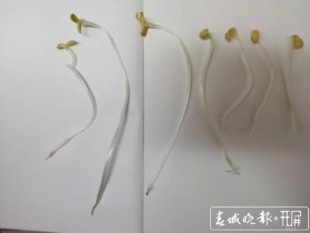 记者回去后,仔细观察了在农贸市场买回的几个品种的豆芽,发现卖相最好的豆芽,最先蔫,而且颜色变得更黄,其他豆芽没有明显变化。