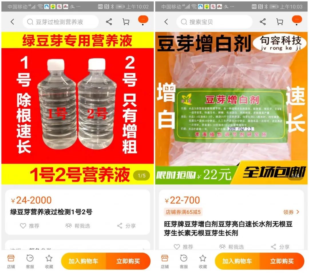 小王在网络上一番查找后,搜索到了一家叫“新希望豆芽”的网店。这家网店销售一种“豆芽营养液”。小王与卖家进一步了解后得知,这其实就是泡豆芽药水添加剂,使用后,能快速地让豆芽生长,而且生长周期缩短,长出来的豆芽又粗又好看,卖相很好。