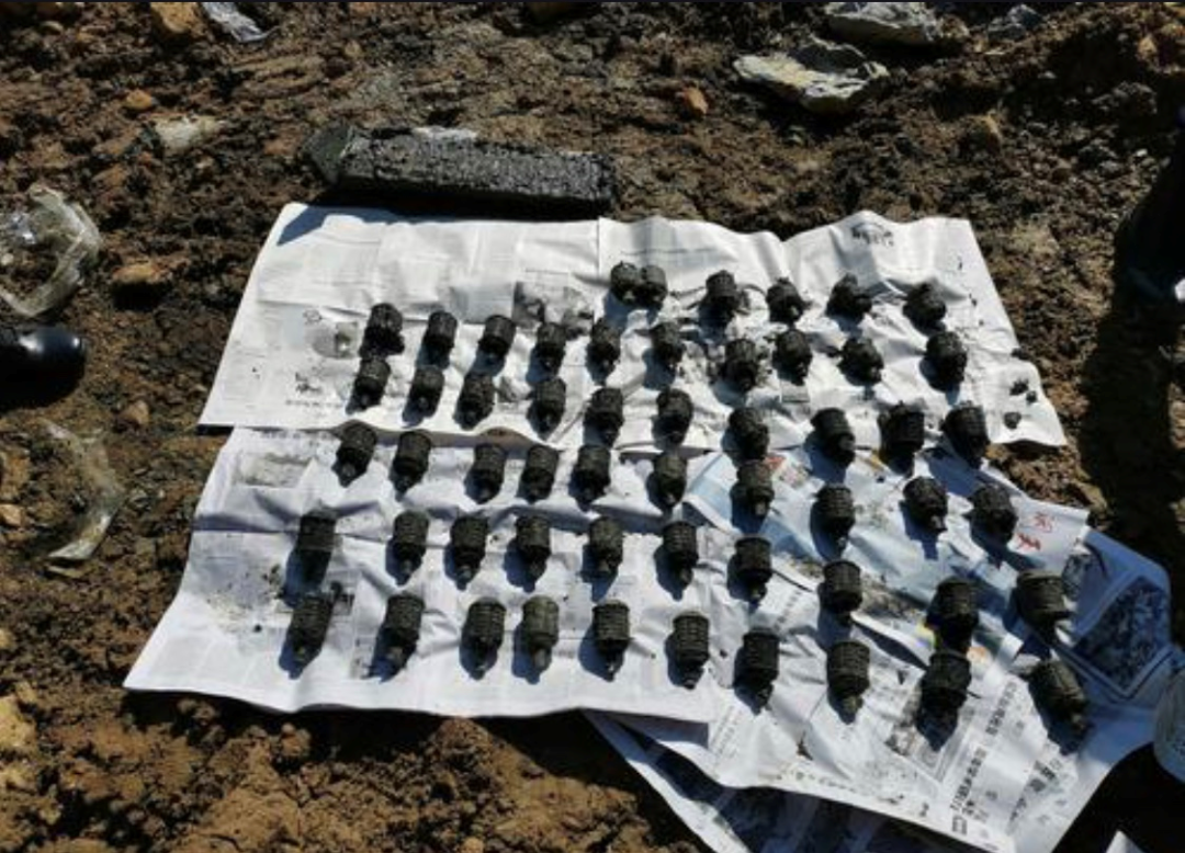 经现场鉴定, 这些手雷都是侵华日军在1937年装备的97式手雷,俗称“甜瓜弹”,杀伤力极大。