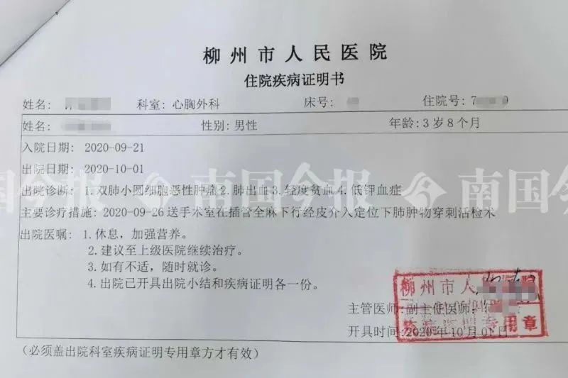 3岁男童患上肺癌