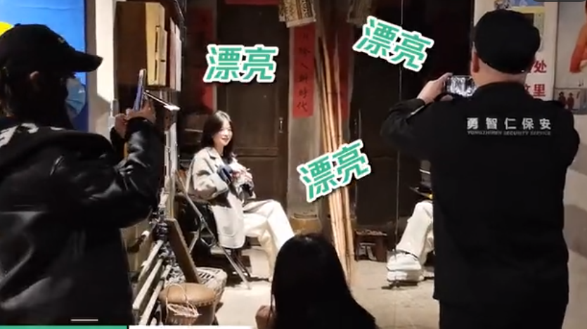 “漂亮!漂亮!”在微博、抖音等平台上热播的视频中,这名戴着耳麦、身穿制服的保安大叔,一边为游客拍照,一边用提高了嗓门、拖着长音的说话方式和游客互动。景区现场的游客说,保安大叔的动作和表情很“喜庆”,不时指导游客变换拍照姿势,尤其是他拍照时大声吆喝的“漂亮”,“极富喜感,都能把游客说害羞。”