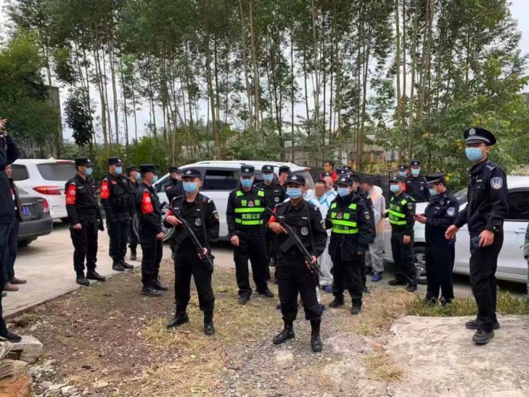 12月3日,19名嫌疑人被宾阳县公安局反诈民警、特巡警押至新桥、新圩、古辣、甘棠、中华镇指认现场。
