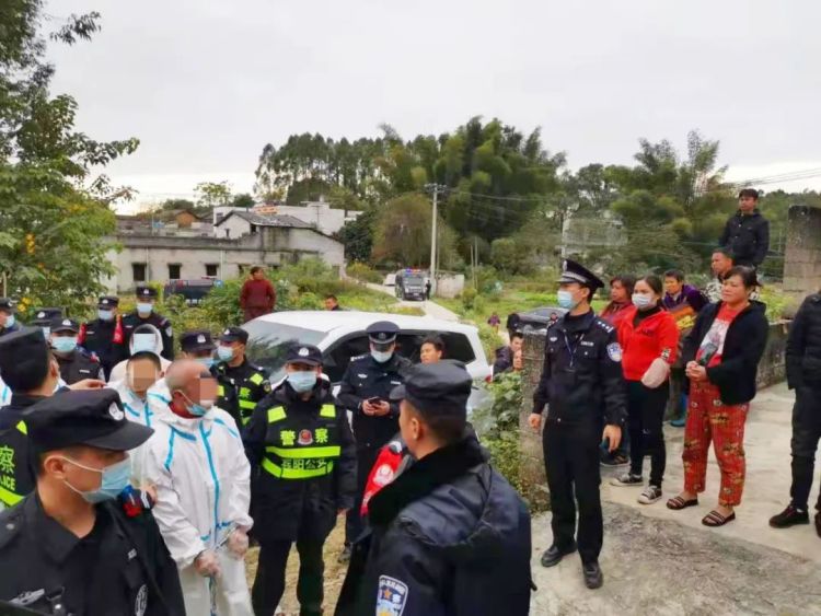 为了形成强大法律震慑,12月3日,宾阳县反诈民警、特巡警及新桥镇法治宣教员、村委共同参加现场指认活动。