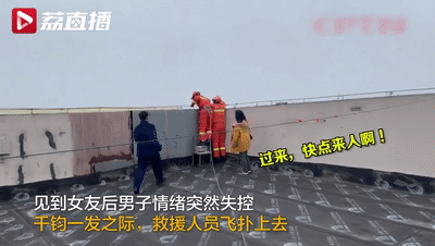 这时民警联系到了该男子的女友,在女友到达现场后,交谈过程中男子情绪突然失控,整个身体已经在墙外悬空,仅有一双手抓住顶楼护栏。