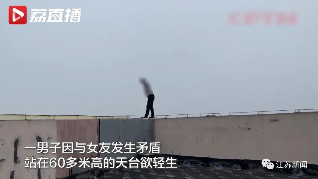 一名年轻男子爬上21层60米高楼的楼顶