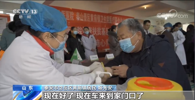 山东省泰安市岱岳区黄前镇居民 姬光安: 平时去镇上看病取药不是很方便,现在好了,现在车来到家门口了。