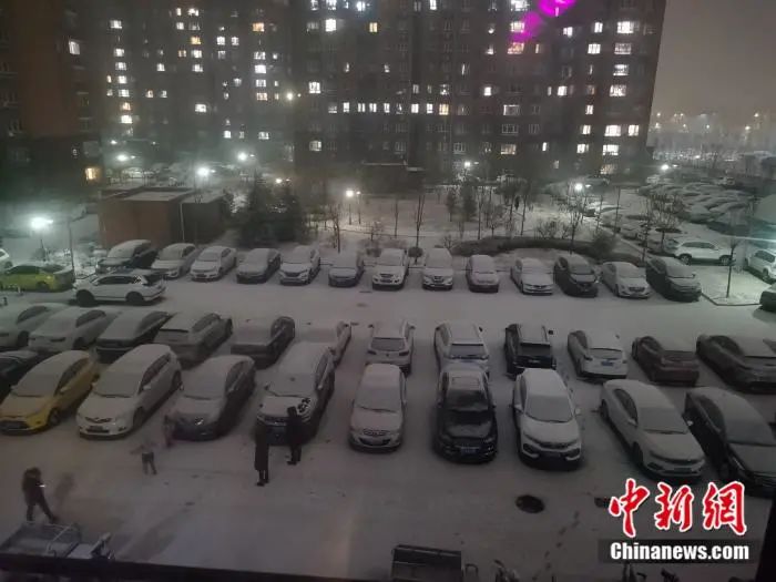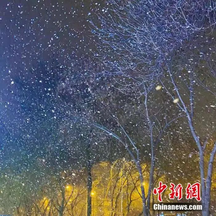 12日晚,北京昌平区出现明显降雪。中新网 李金磊 摄