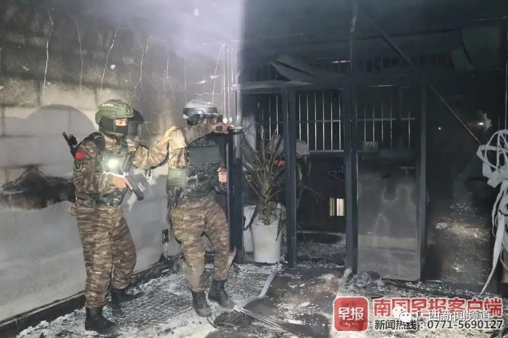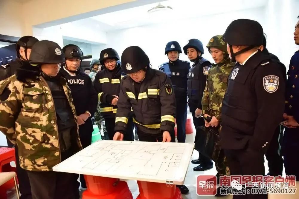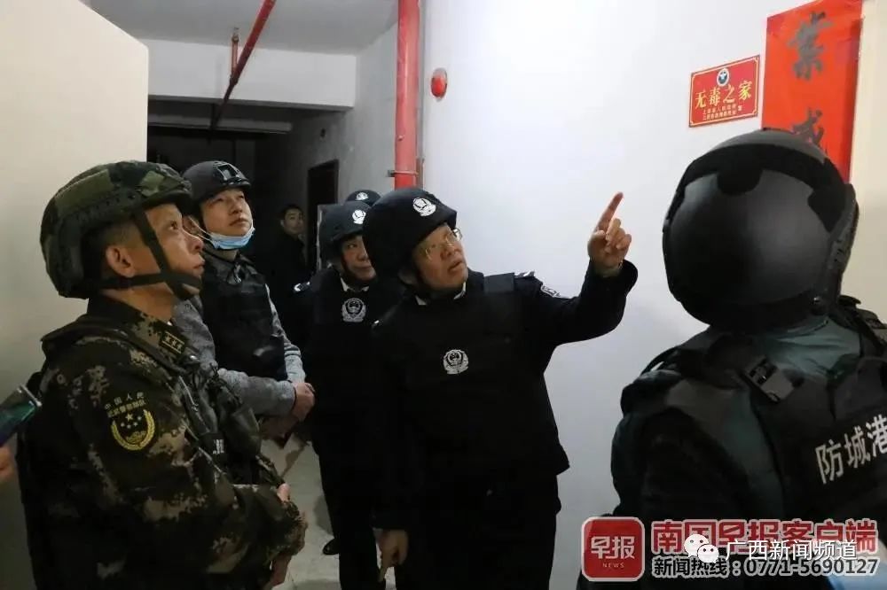 由于小区居民多、现场情况复杂,专案组立即调整抓捕方案,迅速疏散周边群众,并做好周边警戒,调集力量支援。防城港市公安局调集多方力量增援,组成战时指挥部进行处置。