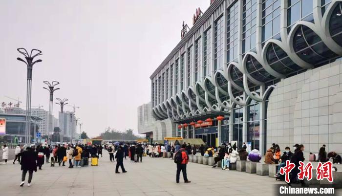 乐山高铁站外滞留等待的旅客。乐山市交通运输局供图