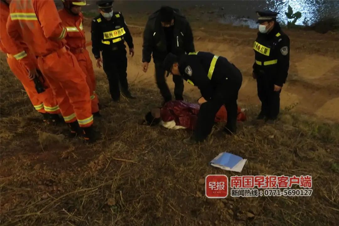 1月10日晚,钦州市五桥处有一名20多岁的怀孕女子跳江轻生,现场3名群众跳入冰冷的水中合力救援。