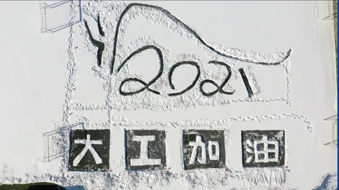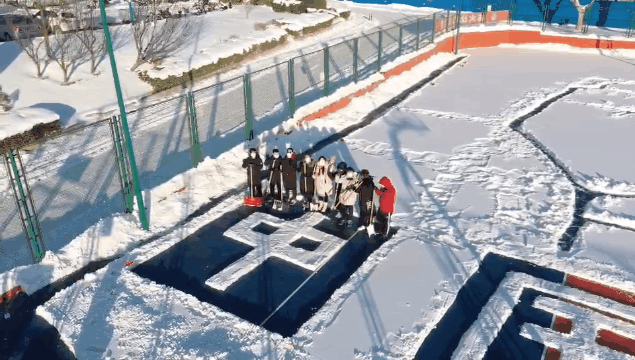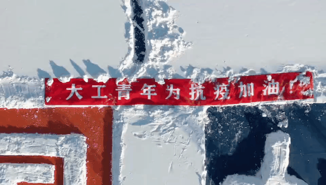 雪中绘制图案为“中国加油”