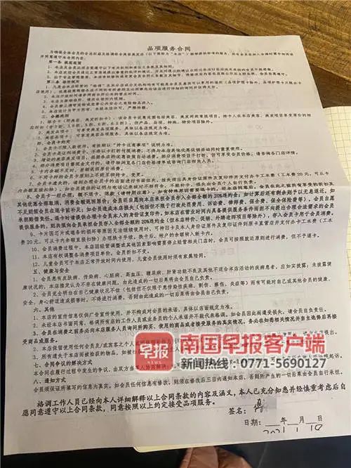 ▲傅女士办卡后,店里要求她签署了一份品项服务合同。