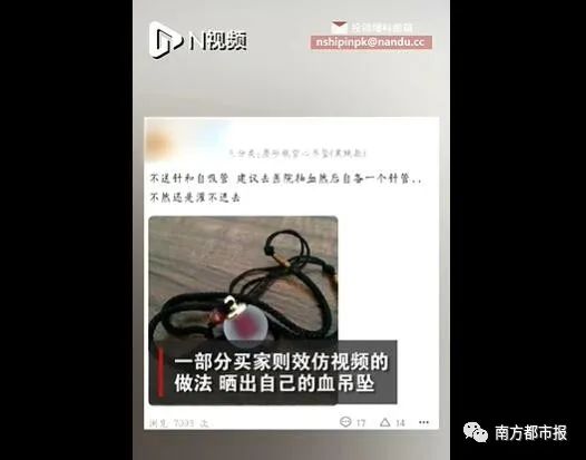 一部分买家则效仿视频的做法,晒出自己的血吊坠。
