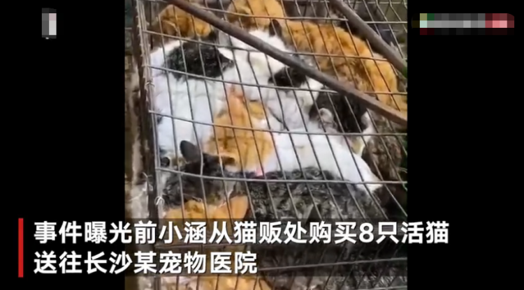 2月6日,视频拍摄者小涵(化名)和多名志愿者向记者讲述他们救助活猫的经过。小涵曾以16元一斤的价格在市场购回8只活猫,送往长沙某宠物医院救治。