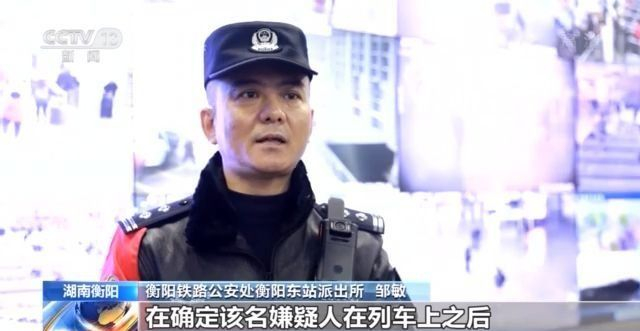 衡阳铁路公安处衡阳东站派出所 邹敏: 在确定该名嫌疑人在列车上之后,值班所长立即组织警力,前往站台进行布控。当列车到达衡阳东站,我们一举将嫌疑人抓获。