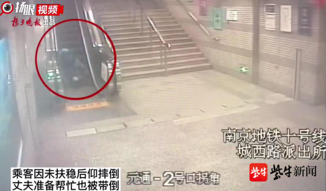 扬子晚报网2月28日讯(通讯员 狄公宣 记者 陈勇)2月21日晚20时左右,乘客王女士在南京地铁10号线元通站乘坐电扶梯时,因未扶好扶手重心不稳,随后后仰摔倒。身后的丈夫见状,准备托起妻子,谁知也被连同带倒。