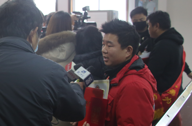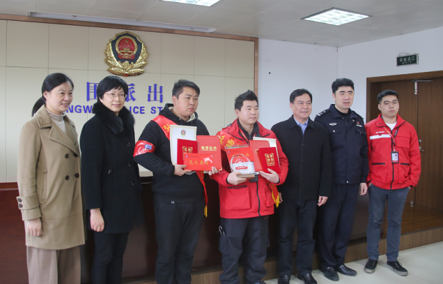 3月9日上午,杭州市萧山区见义勇为基金会在宁围派出所为快递小哥董乐夺和外卖小哥林小涛颁奖,授予其“杭州市萧山区见义勇为积极分子”荣誉称号, 并颁发了证书和奖金。