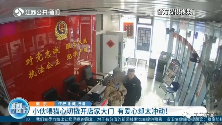 “有一名男子,从路边走到门店门口,在门口徘徊了一下,然后从旁边找了一个拖把棍,门下面有一个很小的缝,正好拖把棍伸进去之后把门撬了一个缝,这只猫就从门缝里出来,这名男子就把猫抱走了。”南京市公安局秦淮分局朝天宫警务站民警郑光亮说。