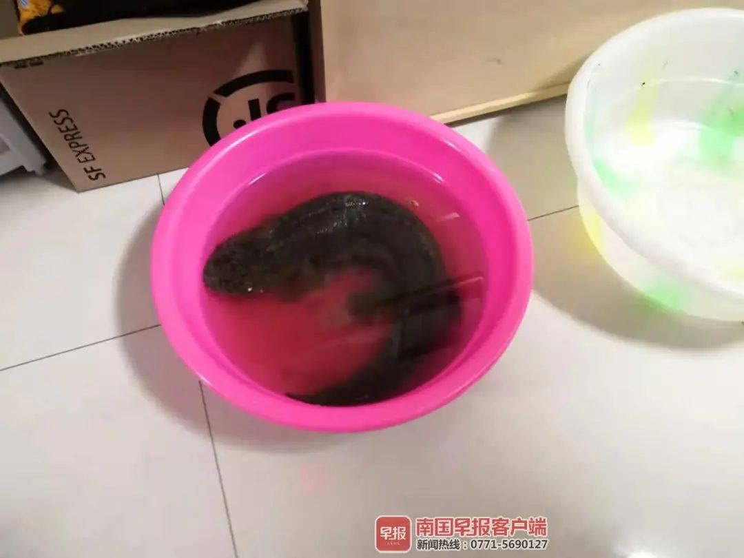 陈先生仔细辨别后,认为这可能是保护动物娃娃鱼。他马上叫来物管人员,把鱼放进盆里,没多久,它就“复活”了。