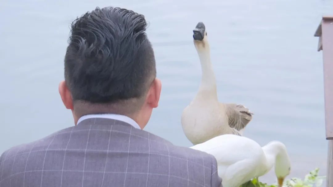 黑天鹅可以听懂胡承春的济南普通话,胡承春也能明白黑天鹅的鹅语。