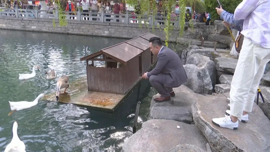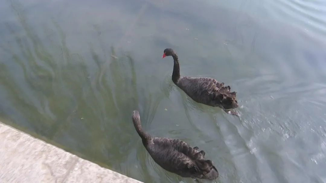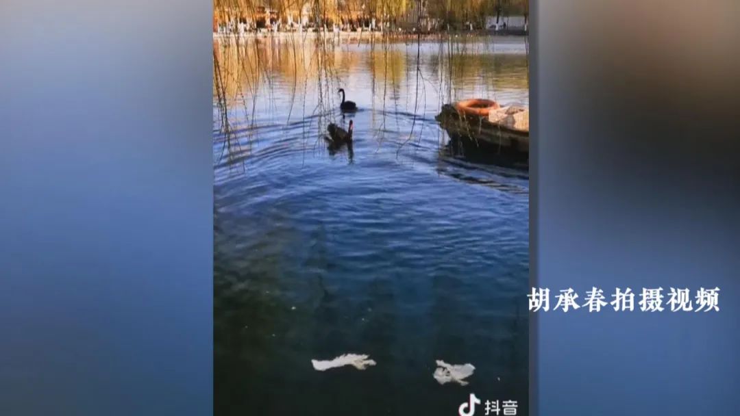 2019年的9月份,来到百花洲的第2天,他就和这两只黑天鹅成了朋友。