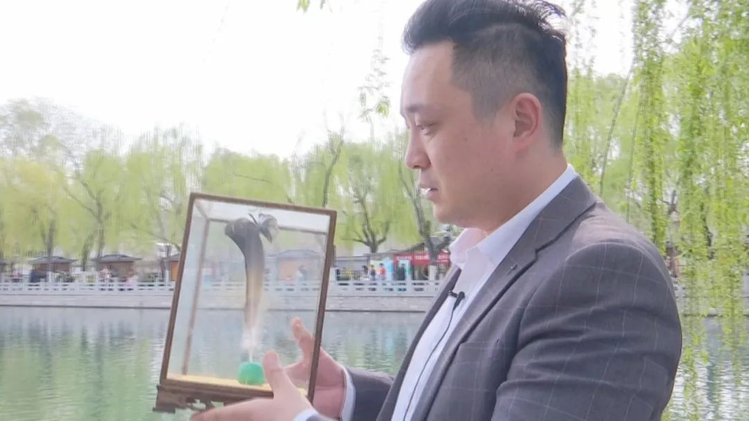 与天鹅对话的这个人叫胡承春,在济南百花洲的湖边有个非遗核雕的工作室。