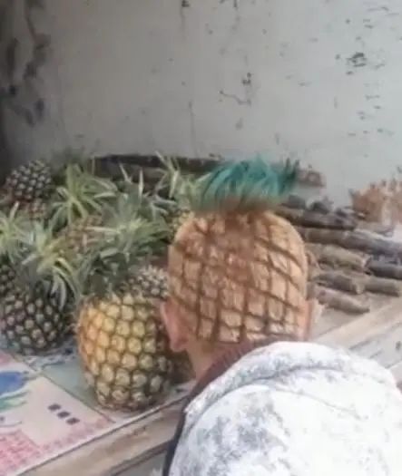 视频显示,3 月 29 日,在河北邯郸某街上,尚先生顶着 " 菠萝头 " 正熟练的给菠萝削皮。他对此解释说,自己之前在短视频平台看到有人理了 " 菠萝头 " 卖菠萝,感到特别稀奇,所以在 2019 年 3 月也理了一个菠萝发型," 那会在青岛卖菠萝,销量十分火爆。"