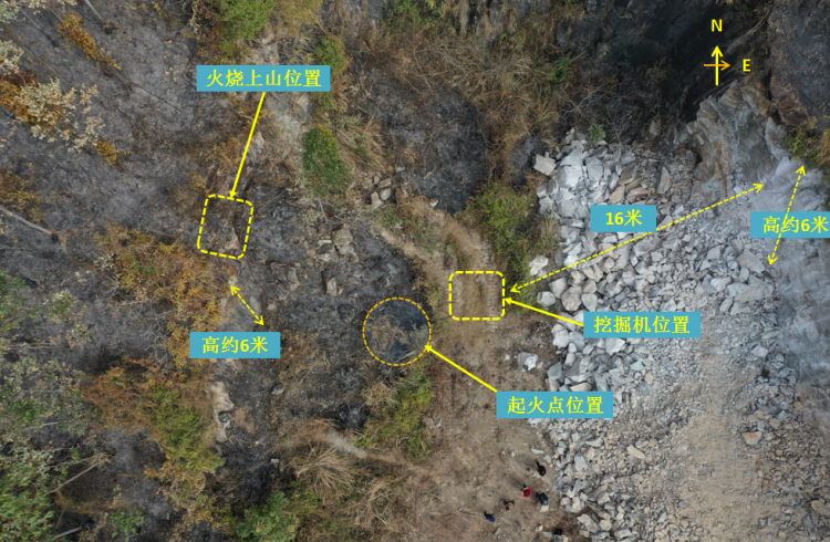 当日上午,挖掘机在作业时,发动机排气管口正对西边的茅草和茅草花,排气管喷出的火星将其引燃,火烧上山后引发了森林火灾。