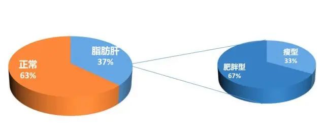 杭师大附院体检中心对10564位健康体检者进行了一项为期6年的随访,这些体检者每年入院体检,查出脂肪肝的有3942人,脂肪肝患病比例达到37%,这当中有1100多例是瘦型脂肪肝, 约有15%纤维化出现明显上升。